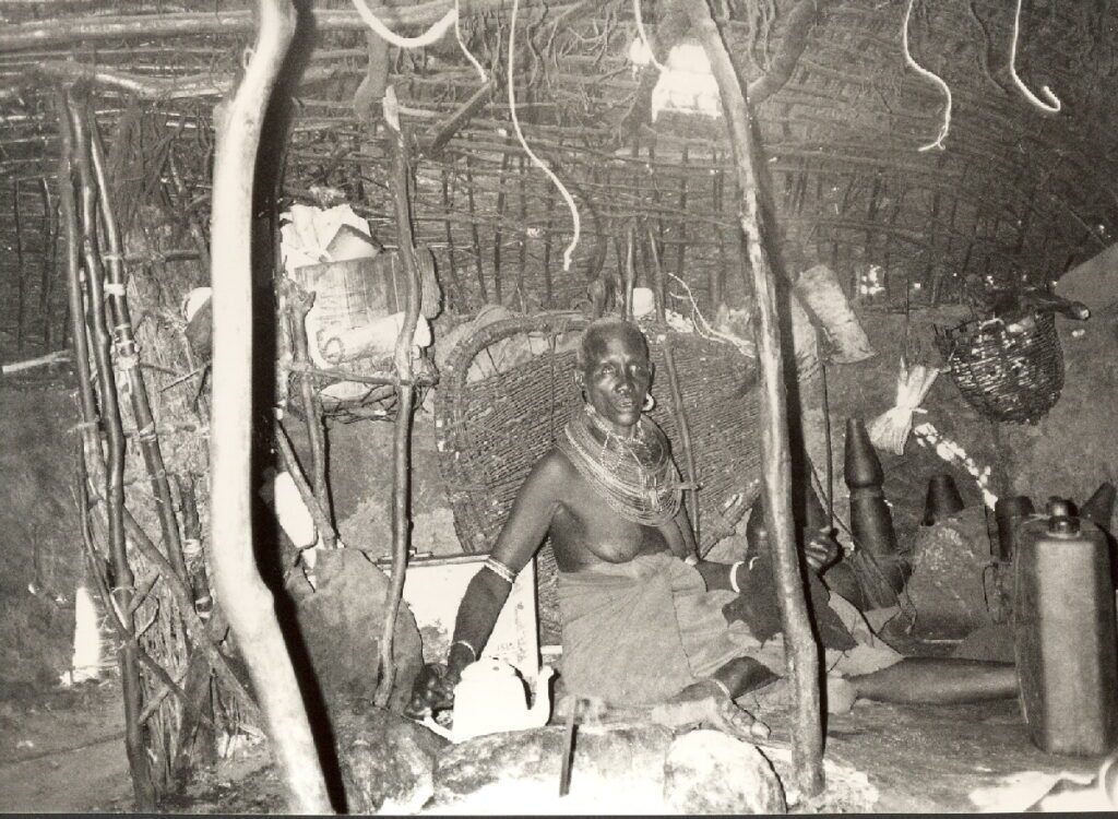 Het is weer hoog tijd voor een kopje thee met vette melk en vele scheppen suiker. Enkele morans steken hun speren in de grond bij de opening van Busuké’s hut en kruipen er naar binnen. De morans wonen niet in een specifieke hut, ze eten en slapen daar waar ze zich het beste thuisvoelen. De boma als geheel ishun woning. Alle hutten zien er identiek uit. Ze zijn laag en knus, iedereen kruipt bij elkaar. In de ene helft liggen huiden om op te slapen, in het andere gedeelte brandt het vuur en verblijven de vrouw des huizes en het favoriete geitje. Ramen ontbreken.