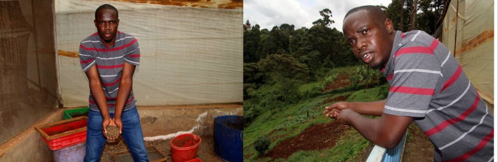 Agronoom Onesmus Mongare (30) wroet met zijn vingers in de rottende massa maden en afval. Dit is zijn goud: organische mest gemaakt met hulp van de zwarte soldatenvlieg, als alternatief voor kunstmest en pesticiden. „Kenianen weten niet meer wat ze eten. Boeren spuiten met zoveel vergif als ze maar willen, als het maar geld opbrengt”, zegt hij tussen de groene heuvels net iets buiten de hoofdstad Nairobi. Landbouw is business  geworden in Kenia. „Hoe kun je liefde voor je gewassen opbrengen als je alleen maar landbouw bedrijft uit commercieel oogpunt?”